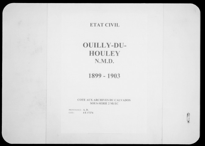 Ouilly-du-Houley est issue de la réunion des communes de Saint-Léger-du-Houlley et d'Ouilly-le-Ribaude en 1825.