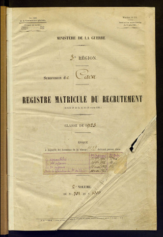 Sont conservés aux Archives du Calvados les registres matricules des classes 1870 à 1940 inclus pour les subdivisions de Caen, Falaise et Lisieux (réunies en une seule à partir de 1929). Les registres matricules des classes postérieures se trouvent au Service Historique de la Défense de Pau (centre des archives du personnel militaire, CAPM).