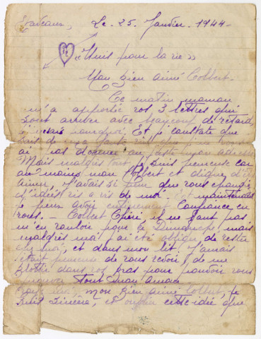 Le 23 février 2024, les Archives du Calvados ont reçu la visite exceptionnelle de Bernard Duval, résistant et déporté, venu donner ses archives personnelles : souvenirs de déportation, attestation de résistance et même sa veste de déporté qu'il avait gardée précieusement depuis son retour, il y a près de 80 ans. Nous lui sommes très reconnaissants, et nous nous sentons honorés de cette marque de confiance. Merci aussi à Gérard Fournier, Président de l'Association Mémoires de la Résistance et de la Déportation normandes, qui oeuvre inlassablement au travail de mémoire, et à la sauvegarde de ce patrimoine si précieux et si fragile. Le don de M. Duval est désormais reconditionné, et coté (6J/96-6J/97), pour être conservé définitivement.