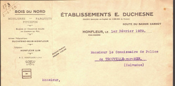 En-tête du papier à lettre des établissement E. Duchesne à Honfleur, 1929. AD14, 16Fi/8 n°1193