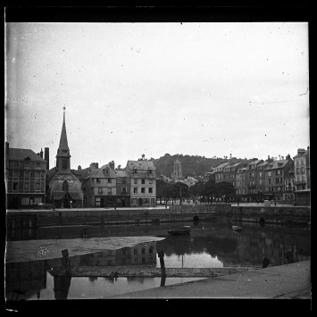 Plaque de verre représentant le port d'Honfleur avec l'église Saint-Etienne-des-Prés, aujourd'hui musée de la Marine, 1901. AD14, 103Fi/1