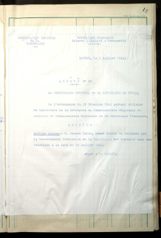 Dicours du général de Gaulle à Bayeux, 14 juin 1944. AD14 2FI/389