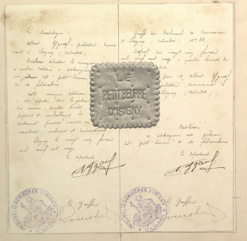 Marque de fabrique du Petit beurre d'Isigny, 1911. AD14, 6U/5/76.